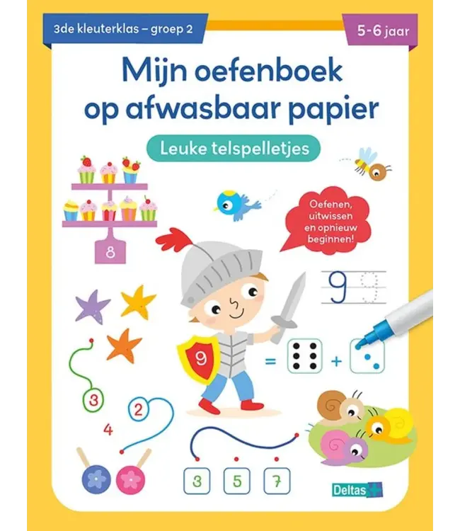 Dit leuke oefenboek op afwasbaar papier is herbruikbaar en dus ideaal voor kinderen die hun eerste stappen naar rekenen zetten. Laat je kind met een stift de oefeningen oplossen, uitwissen en opnieuw beginnen. Eindeloos oefenplezier verzekerd! Voor kinderen van 5 tot 6 jaar die willen leren tellen en rekenen TIP: Gebruik bij voorkeur een uitwisbare stift.