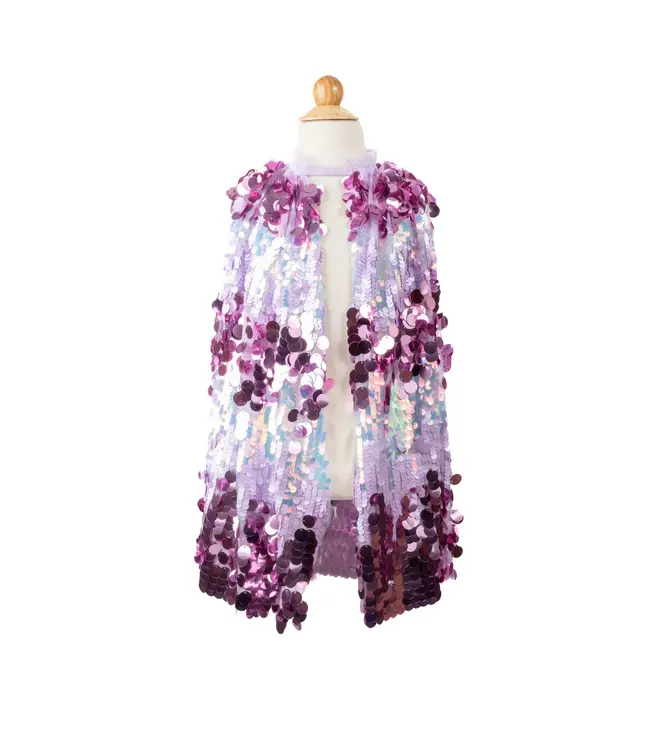 Dankzij de handige klittenbandsluiting bij de nek zit de cape comfortabel en veilig, zodat je kleintje zorgeloos kan spelen en bewegen. Voeg een feestelijke en glamoureuze stijl toe aan de garderobe van je kind en laat ze stralen met deze betoverende paarse pailletten cape.