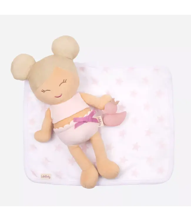 De LullaBaby badpop wordt geleverd met leuke accessoires die het spel nog realistischer maken. Zo zit er een schattige handdoek met sterrenprint bij, een afneembaar topje en een roze badeendje voor extra speelplezier tijdens het badderen.
