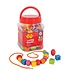 Een bak met fel gekleurde houten kralen die zowel educatief als leuk is! Er zijn eindeloos veel verschillende ontwerpen die langs het kant kunnen worden geregen door verschillende vormen en kleuren te combineren. Alle kralen en veters kunnen worden opgeborgen in de pot met schroefdeksel en de ingebouwde handgreep. Inclusief 90 kralen en 5 veters. Helpt om behendigheid en concentratie te ontwikkelen. Gemaakt van hoogwaardige, verantwoorde materialen. Voldoet aan de huidige Europese veiligheidsnormen. Bestaat uit 95 speelstukken.