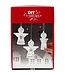 Set van twee unieke decoraties om op te hangen met alle benodigde decoratiematerialen om de tweedelige acrylvormen te decoreren. Elke vorm is voorzien van een kartonnen inleg Inhoud: 3 engelen, 6 veren, 1 set Colortime dubbelstiften, 10 gr goud glitter, 1 transparante lijmstift en elastisch koord