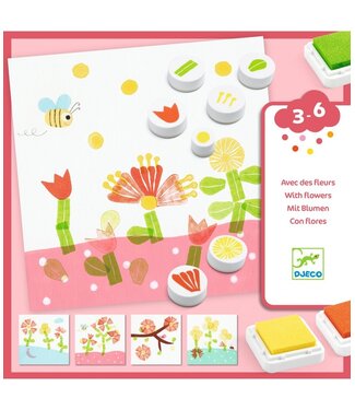 Met deze prachtige stempelset van Djeco toveren kinderen hun eigen bloemenvelden en natuurscènes tevoorschijn. De set bevat vrolijke stempels met lieve illustraties van bloemen, blaadjes en insecten die ze zelf kunnen inkleuren, combineren en tot leven brengen. Dankzij het handige kleurenhulpje leren kinderen spelenderwijs hoe ze de juiste inktkleur gebruiken – zonder geknoei!