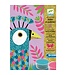 4 tekeningen over het thema vogels om te doen oplichten met gekleurd zand en glitter. De kinderen leggen hun tekening in de doos, maken de voorgelijmde vlakken open met het meegeleverde gereedschap en bestrooien ze vervolgens met gekleurd zand en glitterpoeder volgens de kleurcode in het boekje. Zodra de tekening klaar is, schitteren het verenkleed en het gewei!