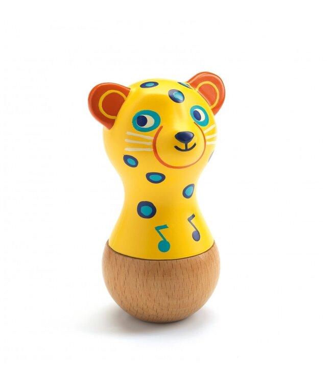 Deze vrolijke maraca in de vorm van een schattige jaguar is speciaal ontworpen voor kleine handjes. Gemaakt van hout en plastic, ligt hij perfect in de hand van kinderen vanaf 12 maanden. Laat je kleintje ritme ontdekken, geluiden leren onderscheiden en genieten van de wereld van muziek. Een kleurrijk instrumentje uit de levendige Animambo-serie, waar muziek en dieren samen feest vieren!