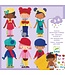 Het kind vermaakt zich met het aankleden van 12 karakters (6 jongens, 6 meisjes) met zelfklevend vilt. Het is tijd om kleur toe te voegen met stickers.
