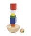 De evenwichtstoren bestaat uit 8 stukken en stimuleert de motoriek. De dobbelsteen bepaalt