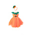 De rok is gemaakt van luchtige lagen zachtoranje tule – precies genoeg volume voor eindeloos zwieren en draaien. De groene kraag in de vorm van pompoenblaadjes voegt een sprookjesachtig accent toe en maakt de look extra bijzonder.