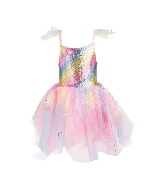 Het Rainbow Fairy Dress is ontworpen met oog voor detail en gemaakt van hoogwaardige materialen, waardoor het comfortabel is om te dragen en de verbeelding stimuleert. De jurk straalt een regenboog aan kleuren uit, met een schitterende rok die als een regenboogvleugel lijkt te zweven. Het is een combinatie van stijl en magie, perfect voor elke kleine fee.