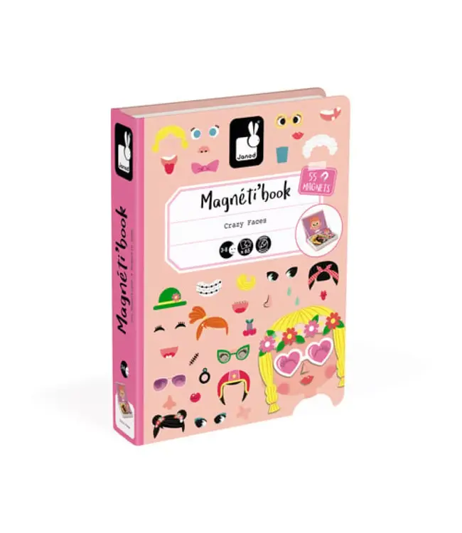 Educatief magneetspel van karton voor meisjes met gezichten als thema. Bevat 55 magneten en 10 kaarten. Open het boek en maak hetzelfde gezicht als deze die op de kaart is aangegeven met behulp van de magneten. Het kind kan tevens andere gekke gezichten maken door andere magneten te gebruiken dan deze die op de kaart zijn aangegeven. Geschikt voor kinderen van 3-8 jaar.