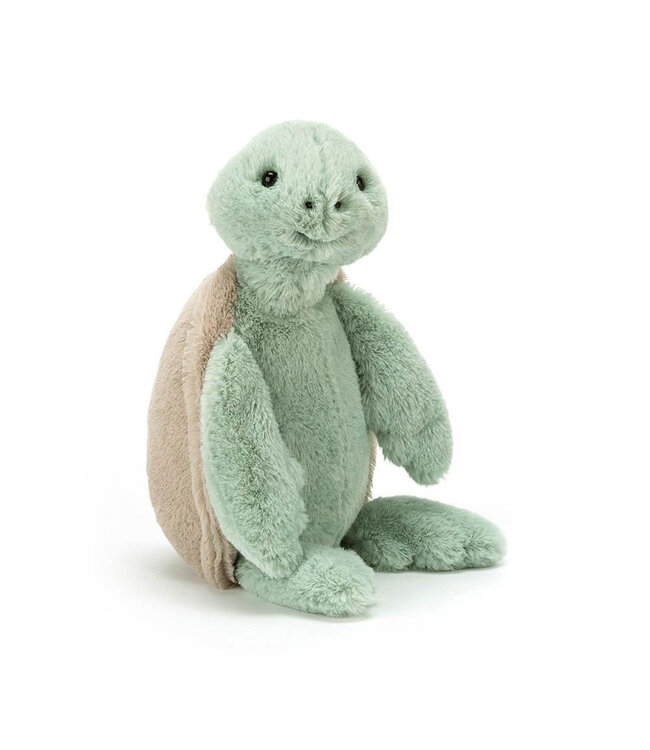 Plons! Bashful Turtle van Jellycat London is gearriveerd en ziet er prachtig uit! Deze zachteaardige schildpad heeft een heerlijk zacht grijsgroen schild en speelse, muntkleurige flippers. De perfecte metgezel voor avonturen aan zee, maar ook ideaal om gezellig tegenaan te ondergronds. Vrolijk, knuffelig en altijd in voor een duik!
