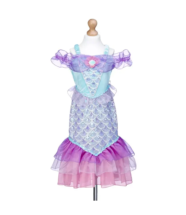 Laat je kind stralen als een echte zeemeermin met het Souza Naiara kostuum! Deze magische zeemeerminjurk in glinsterende blauwe en paarse tinten is perfect voor verkleedfeestjes, carnaval, fantasierijk spel en fotoshoots. De klassieke zeemeerminsnit is comfortabel en de tule stof, versierd met parels en pailletten, creëert een betoverend, schubachtig effect bij elke beweging.