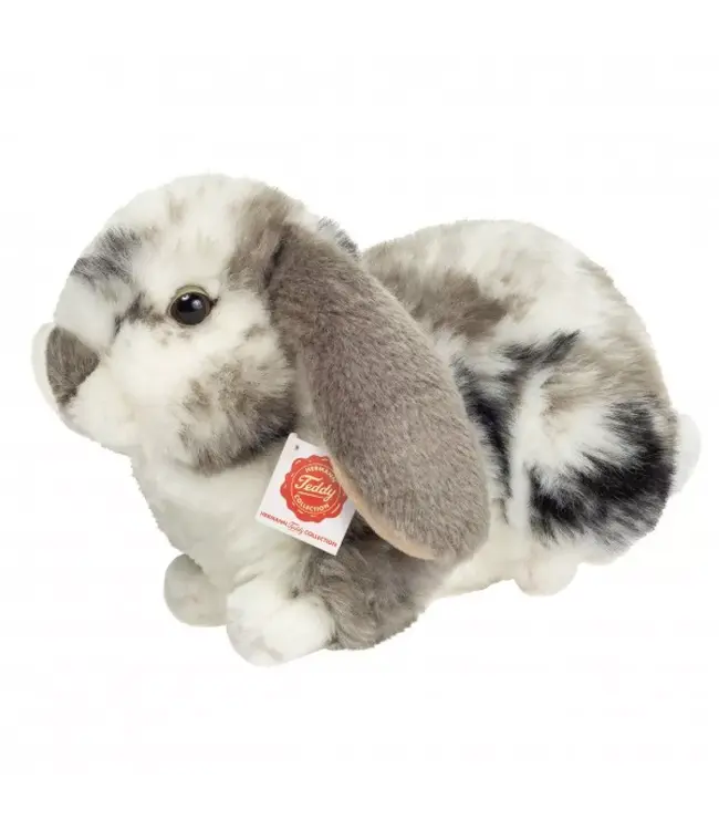 Het Hermann Teddy Konijn Grijs-Wit Gevlekt 23 cm van Hermann Teddy Collection is een zachte en realistisch vormgegeven pluchen knuffel die direct charme uitstraalt. Met zijn grijs-witte gevlekte vacht en vriendelijke uitstraling is dit konijn een geliefd knuffelmaatje voor jong en oud.
