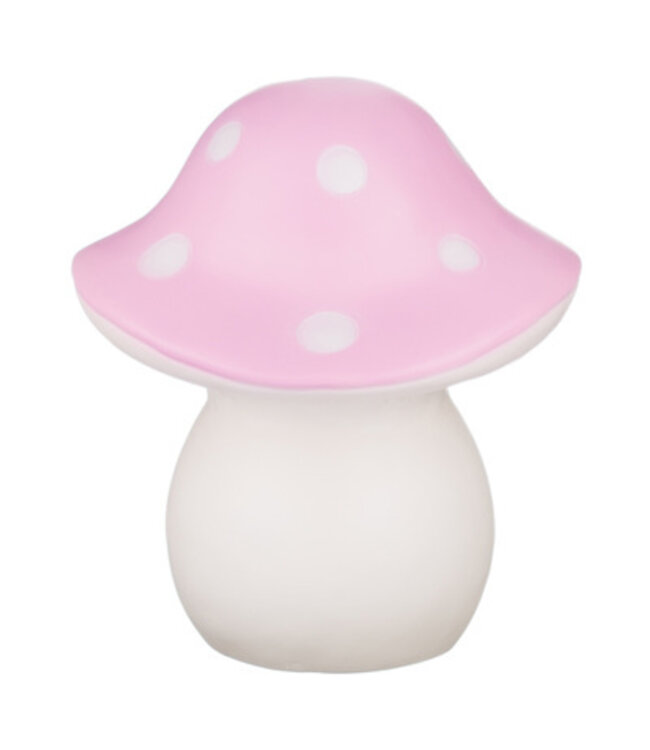 Paddenstoel lamp in de kleur roze met witte stippen