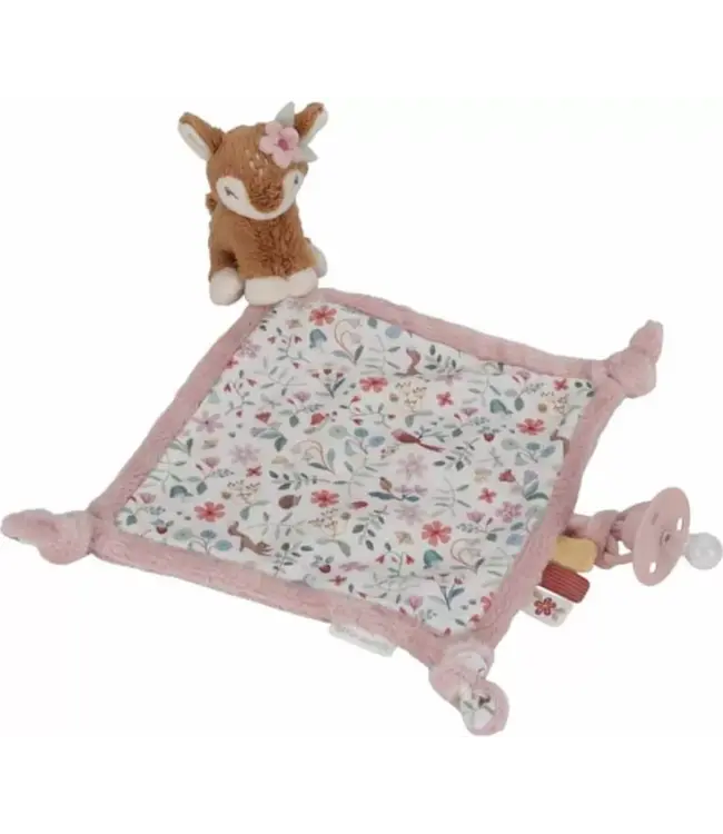 Een extra lus biedt de mogelijkheid om een speen of bijtring te bevestigen, zodat je altijd alles bij de hand hebt. Het schattige hertje maakt het doekje extra knuffelig en perfect voor fijne momenten, waar je ook bent.