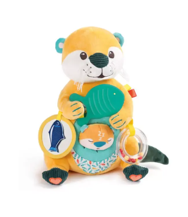 Ontdek Mama Otter, de zachte en sensorische knuffel voor baby’s vanaf 10 maanden die comfort en leerplezier combineert. Deze knuffel stimuleert de zintuigen en fijne motoriek door 8 leuke activiteiten, waaronder een verborgen babyotter in Mama Otters buik, verschillende texturen om te ontdekken, een bijtspeeltje voor tandjes, een spiegeltje voor zelfherkenning, een kralenring die zachte geluiden maakt, en een knisperstaart voor auditieve ontdekking.