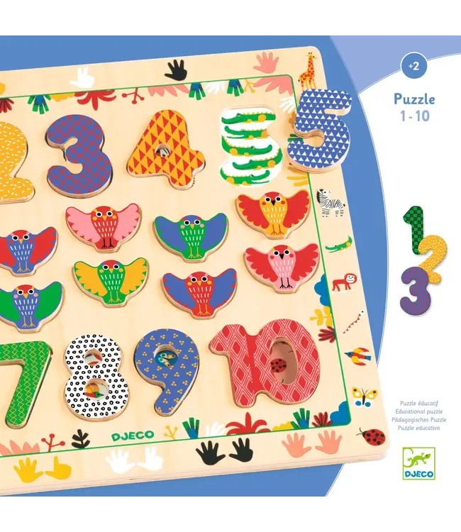Kinderen kunnen ook extra spelletjes doen, zoals de dieren rondom de puzzel tellen of zelf cijfers tekenen. De houten telpuzzel is gemaakt van FSC®-gecertificeerd hout, waardoor het een duurzaam en leerzaam speelgoed is voor peuters en jonge kinderen.