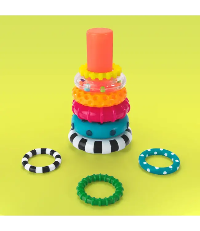 Deze ring stacker is een kleurrijk en leerzaam stapelspeelgoed voor baby’s vanaf ongeveer 6 maanden. Met verschillende ringen ontdekken kinderen spelenderwijs kleuren, vormen en groottes terwijl ze stapelen en sorteren.