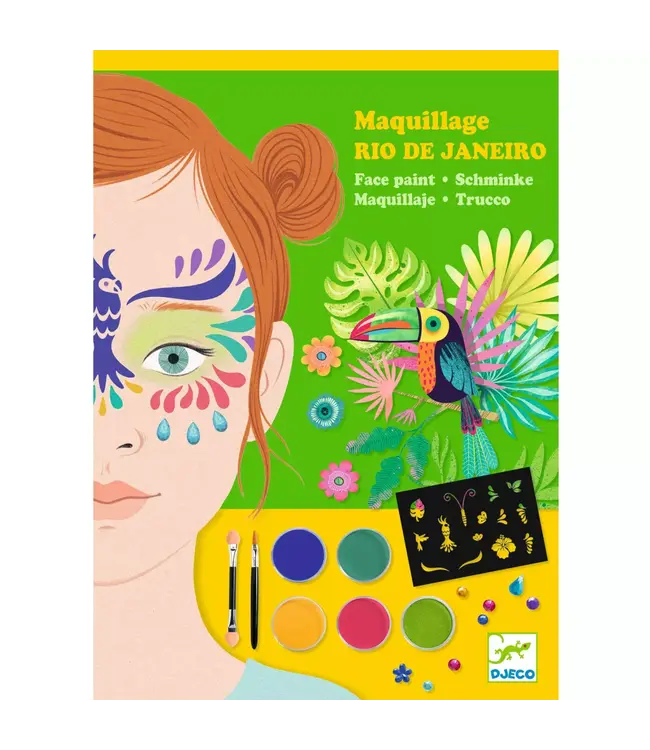 De set bevat hoogwaardige make-up voor een heldere, levendige look en oogschaduw op vetbasis die makkelijk aan te brengen is met een zachte, dekkende textuur. Gedetailleerde sjablonen hechten op de huid om perfecte illustraties te maken en kunnen dankzij het herpositioneerbare materiaal worden gereinigd en opnieuw gebruikt. Voor een extra sprankelend effect zijn er meer dan 75 zelfklevende kralen en strass-steentjes inbegrepen. Alles wordt geleverd in een FSC®-gecertificeerde kartonnen verpakking, veilig en duurzaam voor jonge kunstenaars.