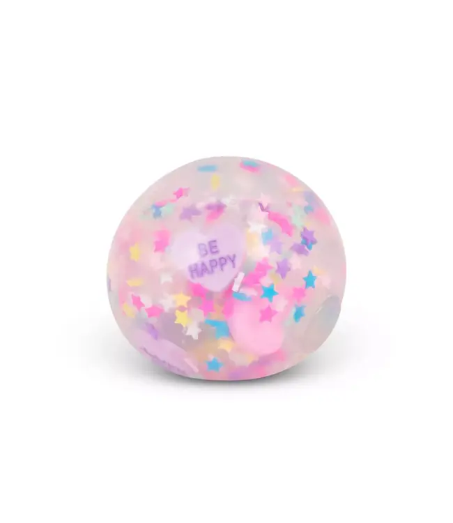 De bal is gevuld met een transparante gel en kleurige confetti, wat zorgt voor een vrolijk en rustgevend effect bij elke knijpbeweging. Bovendien bevat elke bal vier hartvormige boodschappen, speciaal ontworpen om vriendelijkheid, positiviteit en mindfulness te stimuleren