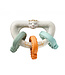 De bijtring bestaat uit een zachte hoofdring met de kenmerkende, natuurlijke rubbergeur van Sophie, en drie kleurrijke sleutels met elk een unieke textuur. Deze verschillende vormen en structuren stimuleren spelenderwijs de tastzin, het zicht en het kauwvermogen van je baby. Dankzij het ergonomische handvat is het speeltje perfect afgestemd op kleine babyhandjes: licht, gemakkelijk vast te houden en ideaal om op te sabbelen en te bijten.