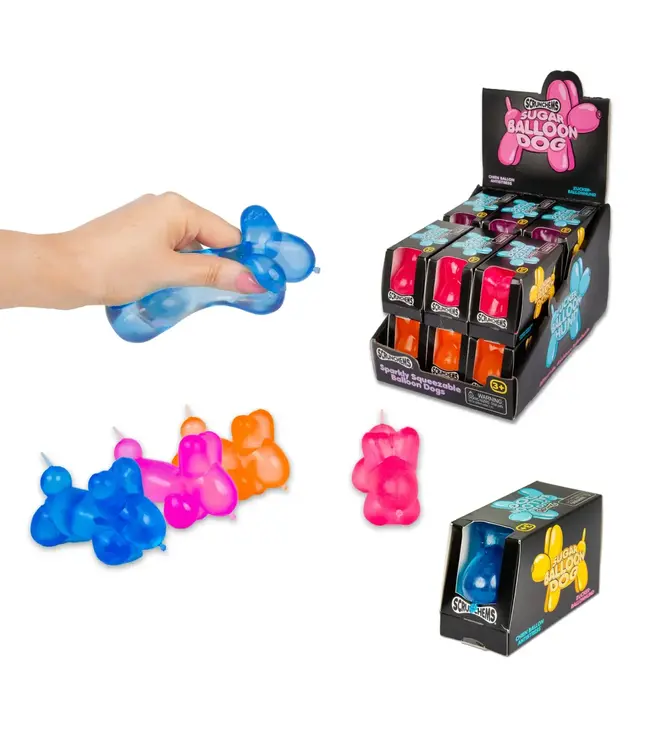 Deze ballonhond is gevuld met een gladde, suikerachtige gel die zorgt voor een fijne tactiele ervaring. Knijp, rek en speel – de squishy keert steeds weer terug naar zijn oorspronkelijke vorm. Perfect voor zintuiglijk spel, stressvermindering of gewoon als leuk speeltje voor tussendoor.