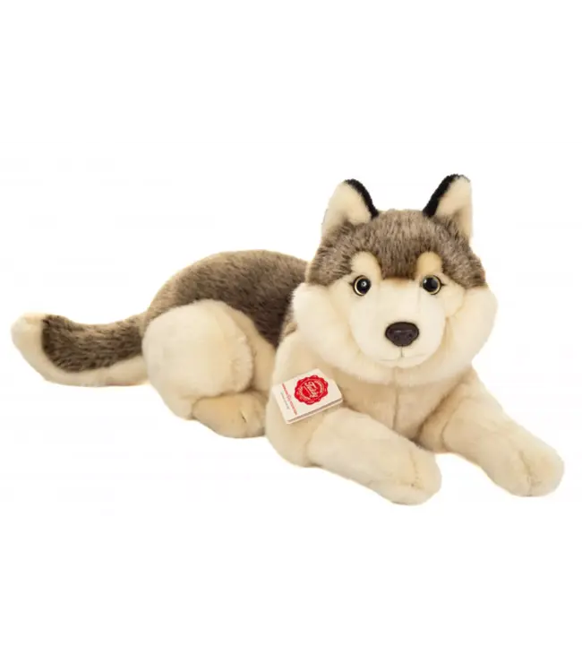 De Hermann Teddy Wolf Liggend 40 cm van Hermann Teddy Collection is een realistische en tegelijkertijd heerlijk zachte pluchen knuffel die perfect is voor zowel kinderen als liefhebbers van natuurgetrouwe dieren.