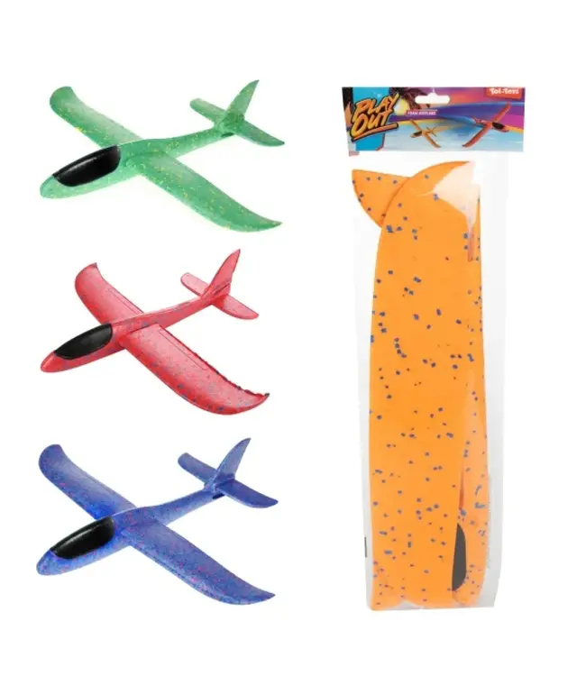 Ga de lucht in met dit grote foam vliegtuig van PLAY OUT! Met een lengte van 45 cm biedt dit DIY-vliegtuig volop speelplezier. Je zet het zelf in elkaar en kunt het daarna lanceren voor stoere vluchten.